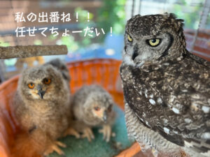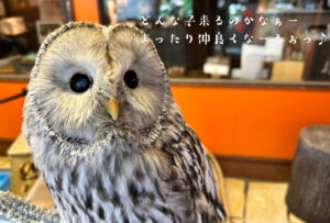 鳥カフェの先輩フクロウたちは、とっても面倒見が良い子が多く、きっとこの子たちも またこの時期がきたか〜と思っているのでは無いかな?なんて思います☺️