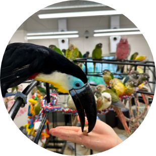Most of the birds in the store are looking for families! While interacting with them,